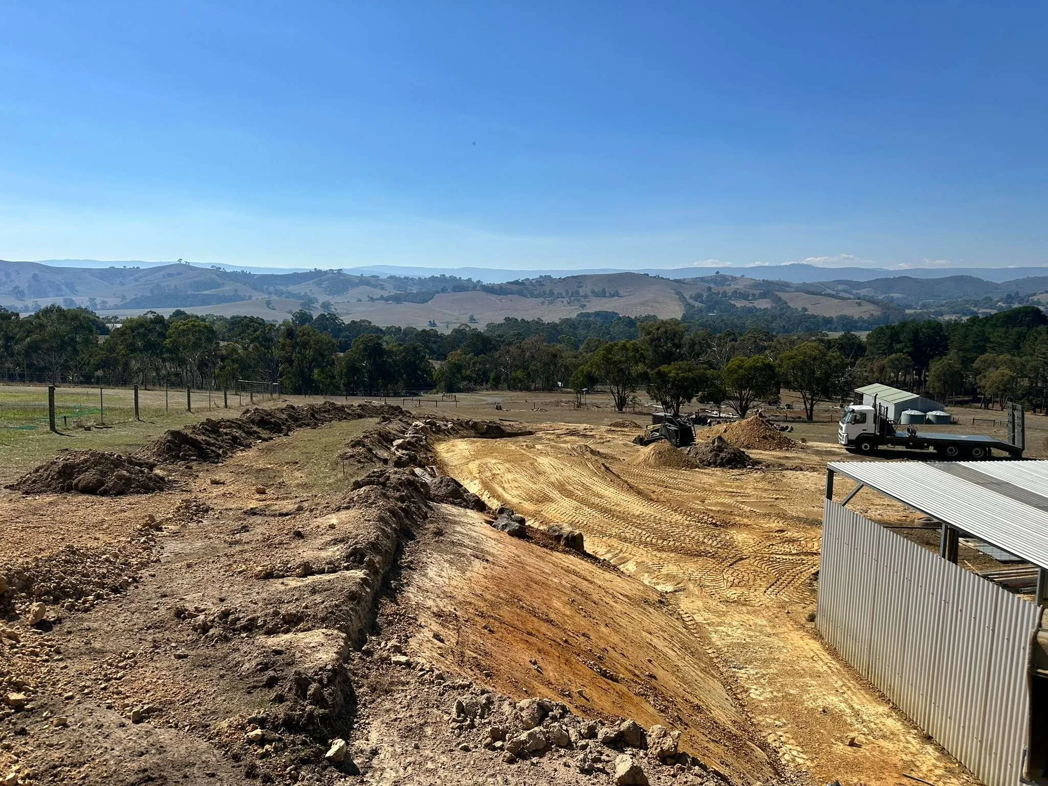 We cut in driveways and access tracks, dig trenches for plumbing and power, build and repair dams, install smart drainage, and create level pads for sheds, tanks, and heavy machinery.